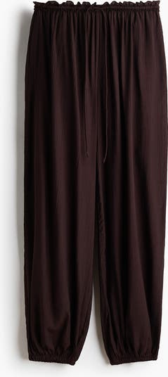 Loose-fit trousers in a viscose-blend crêpe weave featuring an elasticated, drawstring waist with a frill trim. Discreet side pockets and balloon legs with narrow elastication at the hems.