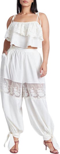 A fluid pull-on pant with tie-cuff hems and an ankle-skimming 28" inseam.