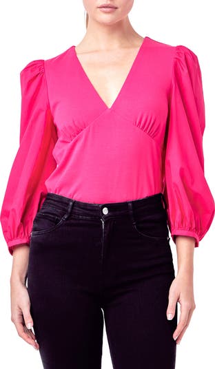 Balloon Sleeve Mixed Media Top