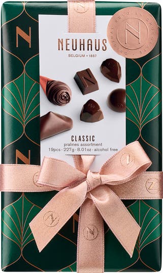 Give the gift of sweetness this holiday season with this beautifully packaged half-pound box of assorted dark-chocolate pralines from the renowned Belgian label.