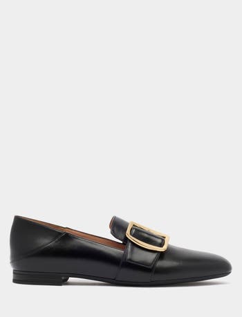 In calfskin, this Bally Boucle slipper seamlessly blends a Bally icon with modern aesthetics in an interpretation of the brand's heritage. To the front, a large metal buckle with the Bally logo secures a strap which extends up and over the vamp. The heel can be folded down and styled as a mule.