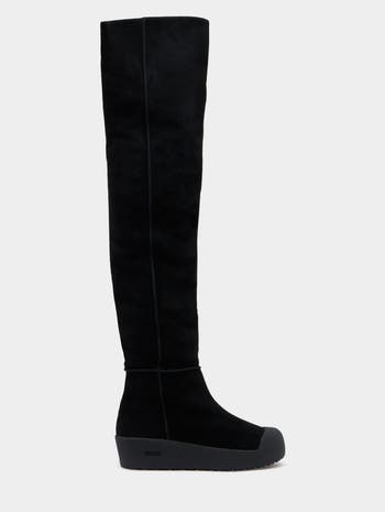 This Bally Curling boot in suede features an over-the-knee length and a high-grip rubber sole, uniting the brand's signature aesthetic and all-terrain performance.