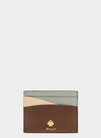 This Bally Essential card holder in leather features a sophisticated colorway enriched by a gold-tone metal Crest and foil logo for an iconic finish.