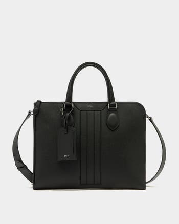 This Beckett briefcase is designed into a slim silhouette in black calfskin with a grained finish. Bally signifiers, from the Ribbon to the logo, enrich this practical bag.
