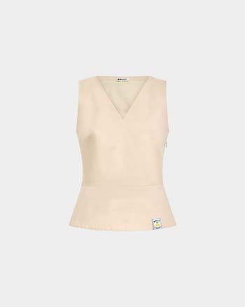 From the Tennis Capsule Collection, this sleeveless top in Ivory cotton is defined by a V neck, a waisted silhouette and a Bally Tennis label on the hem.