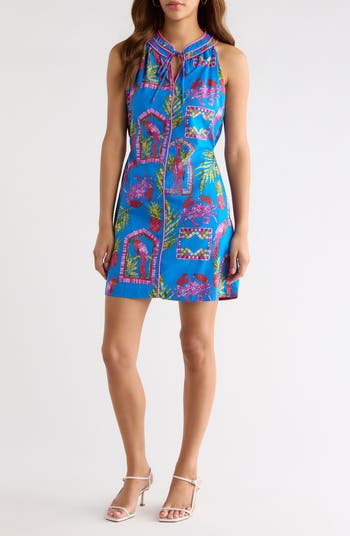 Pure-cotton fabrication gives a light and breezy feel to a stem-showing dress covered in a tropical tile pattern that brings unmistakable warm-weather charm to your look.