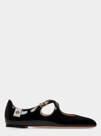 Crafted with precision, this Mary Jane ballerina with criss-cross straps is in patent leather, finished with a Bally Crest label at the ankle.
