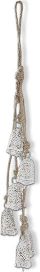 - Balsam Bell and Jute Rope Cluster Decorative Bells are made of iron with an antique white finish measuring 12 inches in height, 1.5 inches in length, and 1 inch in width.