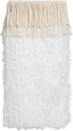 Drapey fringe and shredded fabric mimicking feathers come alive as you move in this skirt that takes Rachel Scott's textural aesthetic to the next level. The exuberant, powerful style was featured on the label's 'Bacchanal' runway, a collection that serves as a joyful ode to Caribbean culture, inspired by the history of Carnival.