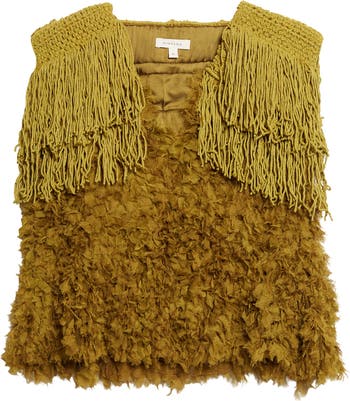The fraying, supershaggy body and tiered-fringe shoulder panels of this runway-featured top showcase the label's dedication to artisan fabrication.