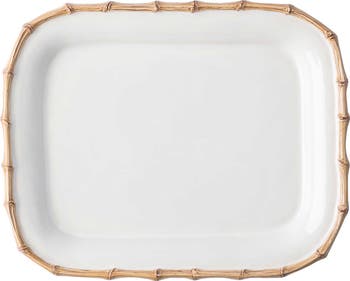 Glazed edges highlight the bamboo-inspired design of this platter that adds a charmingly rustic element to your al fresco table.