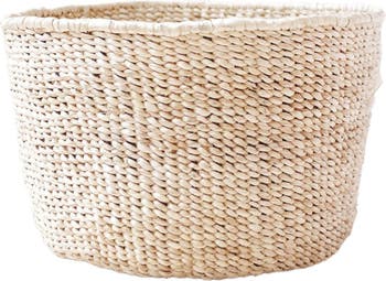 One of our best selling floor baskets, this multi purpose floor basket is the perfect size to elevate small spaces! 17” W x 9” H Natural color Made from handwoven banana leaf Flexible, laid back design Unlined interior with a circular base This basket can be used for storing toys, magazines, towels, blankets and throws and looks great both under an accent table or next to a couch.