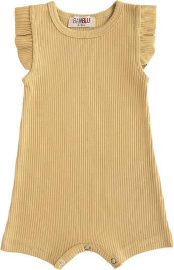Ruffle sleeve modal shortie, featuring a soft and comfortable cotton modal blend, round neck, frayed ruffle sleeve with lower button closure.
