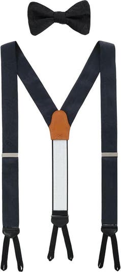 Understated, refined, and effortlessly luxurious, the Banbury Tone on Tone Paisley Silk Braces & Bow Tie Set is crafted for the gentleman who appreciates detail without excess. Featuring a rich tonal paisley woven into lustrous silk, this set delivers dimension and sophistication at every angle, catching the light with a subtle elegance. Finished with a classic Y-back silhouette and perfectly coordinated bow tie, Banbury is the ideal choice for black-tie evenings, weddings, and formal occasions where style speaks quietly, but unmistakably. Bow tie has an adjustable neck sizing from 14 1/2 to 20 inches. The brace is adjustable from 33 to 48 inches.
