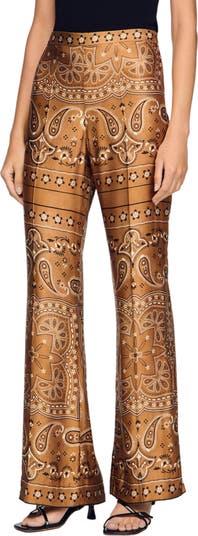 Flowy bandana-print trousers with a high waist and long, slightly flared legs.
