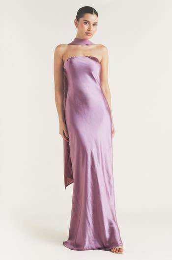 Understated elegance with a modern twist. This Bandeau Bridesmaid Dress is crafted from our signature soft satin and finished with a detachable chiffon neck scarf this season's most-wanted styling detail. The clean, strapless silhouette is beautifully structured to flatter the neckline and shoulders, while the bias-cut shape offers that effortless drape you know and love.