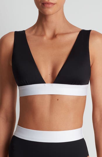 This classic triangle bikini top has a supportive, wide underbust band that's secured in the back by gleaming, logo-stamped hardware.