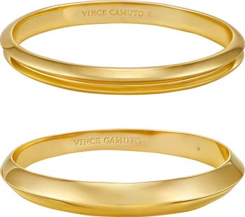 Chic duo bangle set in polished gold tone. Includes two complementary bangles, perfect for stacking or wearing separately.