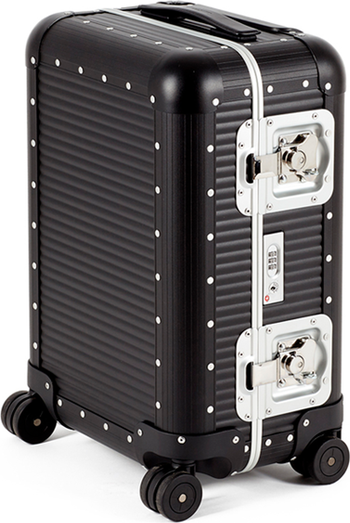 Made in Italy, the Bank suitcases are inspired by the olden day trunks revised in a modern way. The aluminum shells, combined with the special Butterfly locks, guarantee protection and resistance to the elements. The dual wheels ensure ease of transport and the interior with compartment dividers and leather details provide a perfect organization of the content.