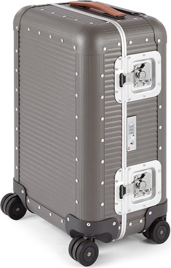 Made in Italy, the Bank suitcases are inspired by the olden day trunks revised in a modern way. The aluminum shells, combined with the special Butterfly locks, guarantee protection and resistance to the elements. The dual wheels ensure ease of transport and the interior with compartment dividers and leather details provide a perfect organization of the content.