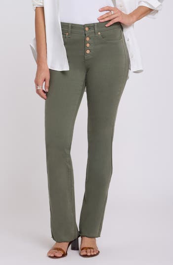 Floor-grazing bootcut jeans offer a fit you'll love with stretchy denim, exposed buttons and Lift Tuck® Technology that smoothes and supports. Frayed hems add a casual, fashion-forward finish.