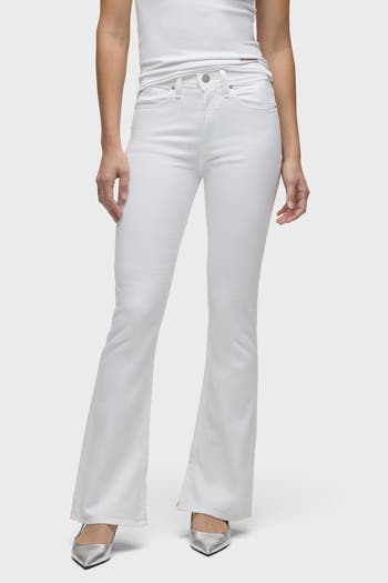 Streamlined and flattering| our Barbara High-Rise Bootcut Jean with Flap in White has a slim|contoured fit with an elevated waistline and a gently flared leg|This pair features our updated button-flap pocket with a new modern shape| Made of premium comfort stretch denim in a clean white shade|it is finished with a high rise| 32" inseam and 5" inseam slit with a clean finished hem|