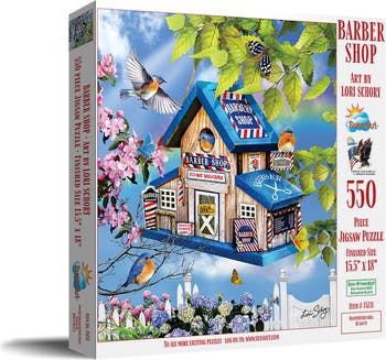 Unleash your creativity with the Barber Shop 550 Piece Jigsaw Puzzle by SunsOut Inc, artistically designed by Lori Schory. With its vibrant colors and intricate details, this masterpiece transforms into a 15.5" x 18" display of artistry and imagination, inviting you into a whimsical world. This puzzle, constructed with high-quality, recycled cardboard, offers an enjoyable assembly, ensuring each piece fits perfectly together for a pleasurable puzzle-making experience. Proudly made in the USA, SunsOut is committed to exceptional customer service, ensuring any missing or damaged pieces are promptly replaced. The company, a woman-owned small business, utilizes the highest quality recycled materials, along with soy-based inks for a sustainable future while maintaining vibrant imagery resonating with Lori Schory’s birds and blooms. Indulge in hours of calming yet engaging activity with this puzzle ideal for adults seeking a relaxing hobby. The puzzle not only provides entertainment but also contributes to the eco-conscious movement and uplifts communities, embodying SunsOut's spirit of innovation, woman empowerment, and artistic heritage of excellence.