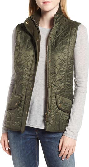 Diamond quilting adds subtle texture to a sleek nylon vest featuring cozy fleece lining and tonal logo embroidery at the pockets.