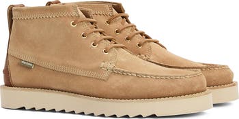 A mix of leather and suede finishes lends textural intrigue to a sophisticated chukka boot styled for modern wear with a moc-stitched toe and sporty grip sole.