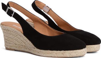 An adjustable slingback strap with an elastic panel ensures easy movement in this closed-toe espadrille wedge that elevates your resort-ready look.