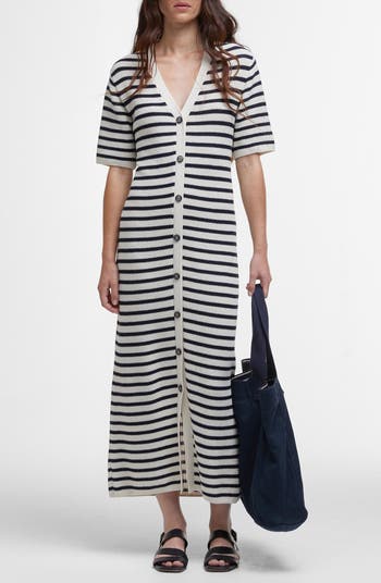Sweater dress season can push into summery days and nights when you choose an all-cotton option served with short sleeves.