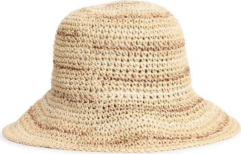 This raffia-like cloche is crocheted in a broken-stripe design in natural hues. It features UPF 40+ sun protection to keep the rays at bay while enjoying warm-weather days.