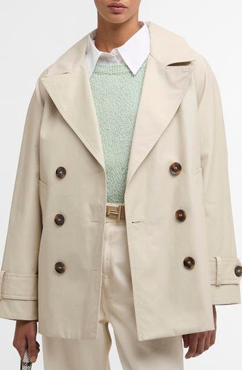 A peacoat-inspired design brings jaunty nautical charm to this lightweight jacket made of a cotton blend with a water-resistant finish to keep you dry during sudden showers.