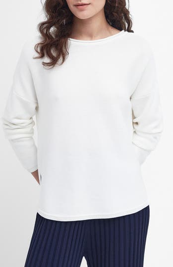 Dropped shoulders give a relaxed fit to this breathable cotton sweater with casually rolled edges.