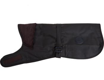 Keep your pooch warm and dry on rainy walks in this waxed-canvas dog coat featuring neck and chest straps for a reliable fit.
