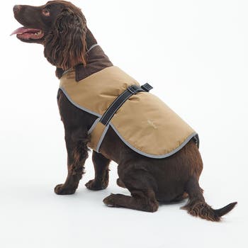 Keep your pup warm and dry when the weather's ruff in this weather-shedding coat with a classic tartan plaid lining.