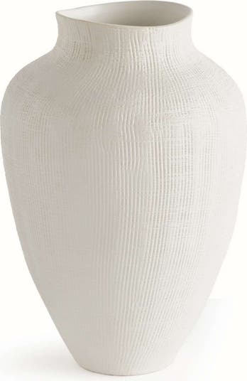 In a modern silhouette with a subtle cross-hatch texture and matte finish, this ceramic vase is a stunning accent. Another high end accessory by iconic lifestyle & interior designer Barclay Butera