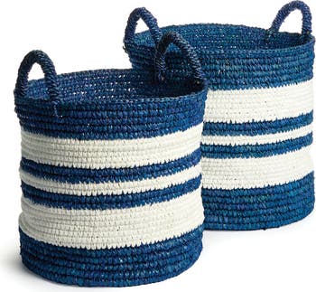In the Barclay Butera signature blue and white, these relaxed striped baskets are a fresh accessory. Perfect for the laundry room, or to hold towels or linens.