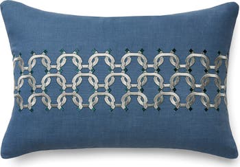An intricate pattern of interlinked embroidery reminiscent of garden gates decorates this pillow that looks lovely nestled on your floral bedding.