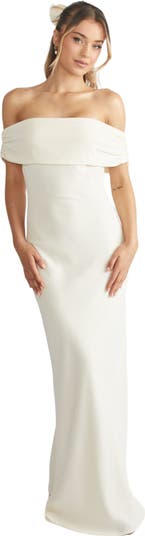 Soft crepe dress designed with a flattering bardot neckline and a bias-cut maxi skirt that creates a smooth, figure-hugging silhouette. Made from breathable stretch fabric for all-day comfort, it is fully lined with a concealed side zip and offers support while remaining bra-friendly.