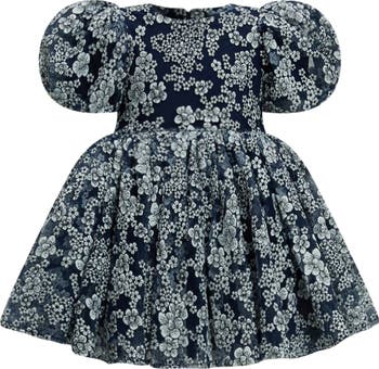 Get your little one party ready in this puff-sleeve dress with dainty blooms all over and a boldly flared skirt.