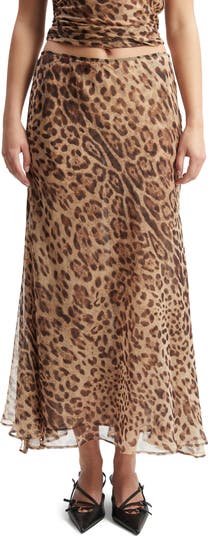 Striking animal spots embolden this smooth chiffon maxi skirt cut in a drapey A-line silhouette.