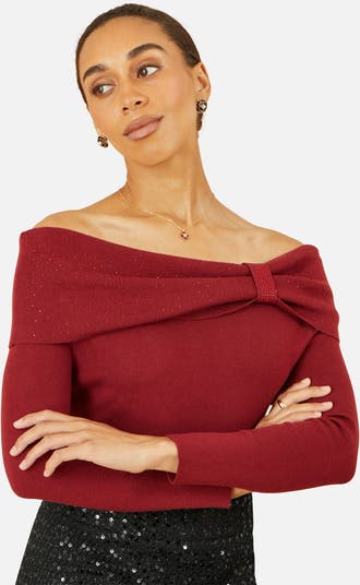 Yumi Bardot Sweater With Diamante Detail, Main, color, Burgundy