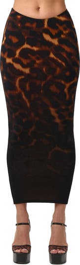 A tortoiseshell print fades to black at the hem, bringing striking dimension to this body-con maxi skirt. A sculpting scoop waist accentuates your shape for a sleek, curve-contouring fit.