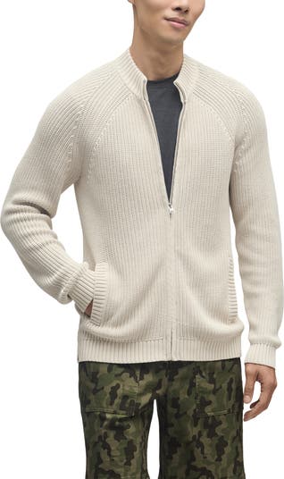 A chunky stitch means ultimate lounge-worthy comfort in a zip front cardigan with a rib stand collar, cuffs and hem.