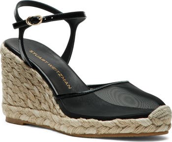 Airy mesh and a slim ankle strap add a breath of fresh air to this classic espadrille wedge.