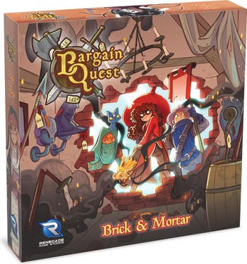 BARGAIN QUEST: BRICK & MORTOR is an expansion for Bargain Quest that lets the shopkeepers engage in direct competition during special Shopping Events! It's time to wage war against your rivals alongside new heroes, items, and employees in the thrilling Retail Rumble game mode! Whether it's a Trebuchet Launch Party or the dreaded Blackguard Friday, the only monster in this mercenary marketplace is YOU. This is an expansion for Bargain Quest. Base game is required to play. This expansion introduces event cards depicting various chaotic shopping events that occur throughout the year! Includes new shop boards, employees and items that can be used in any game mode.