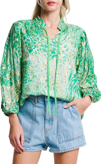 You'll twinkle from morning til midnight thanks to the galaxy of metallic stars dotting this top cut for a billowy fit that makes the most of the airy, lightweight fabric.