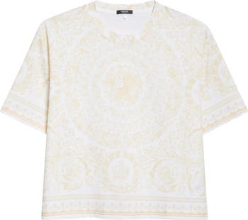 Signature Versace opulence meets everyday ease in this this boxy Italian-cotton T-shirt swirled with lavish baroque filigree.