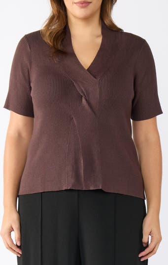 Fine ribbing shapes this figure-skimming knit top that layers for work and wears alone on the weekends.